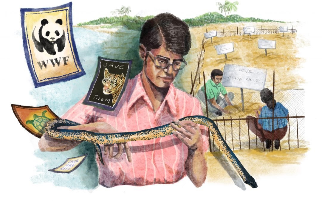 Preston Ahimaz started out as a volunteer in the Madras Snake Park and was one of Romulus Whitaker’s recruits. Despite having a degree in commerce, he decided to pursue wildlife as a career and was the first coordinator of the WWF office in Chennai, starting with a tiny office and a table and a chair in 1982. He built their nature camp program, training many youngsters who went on to become wildlife biologists and conservationists. Preston was instrumental in taking a number of students and Chennai residents on turtle walks through the 1980s.